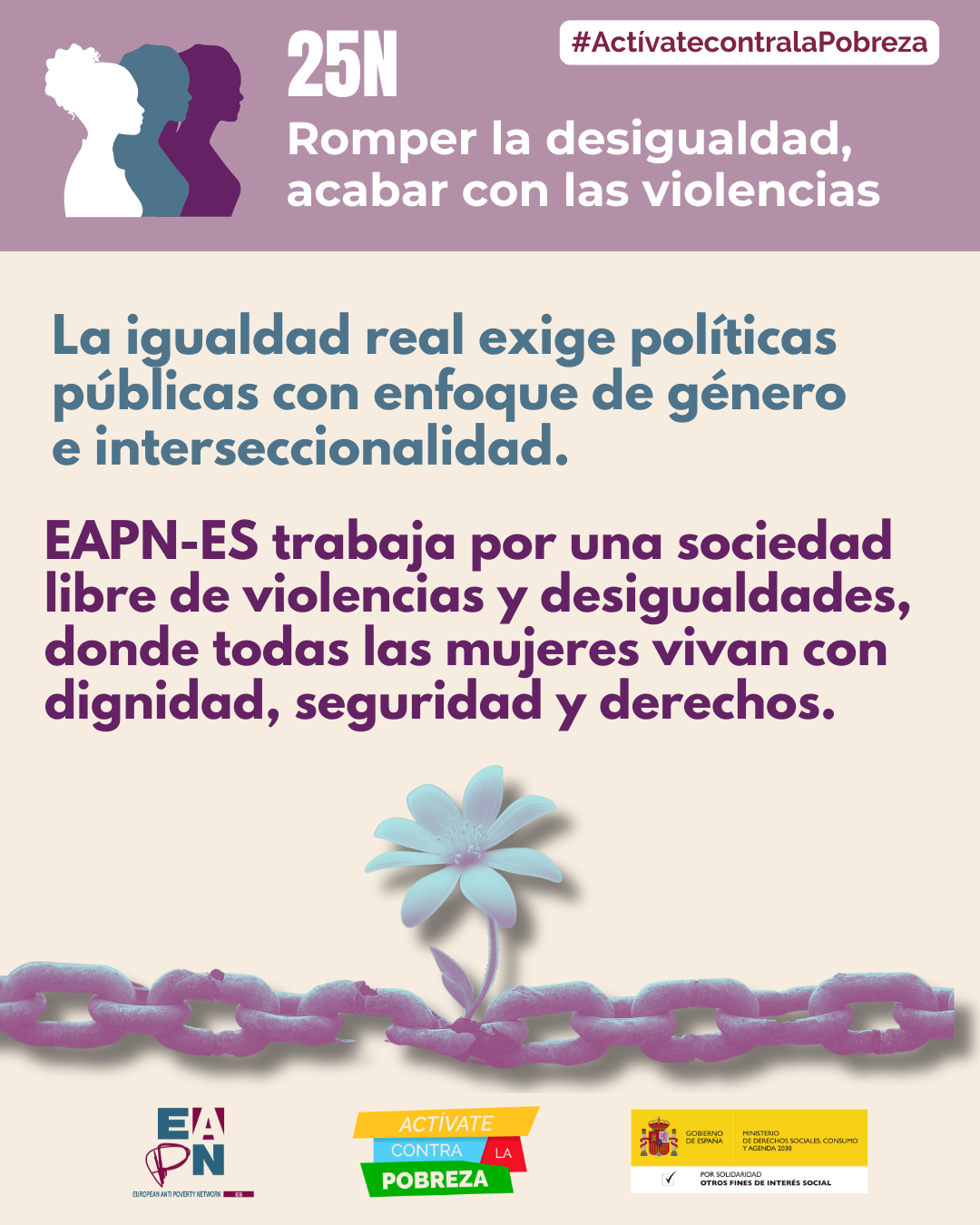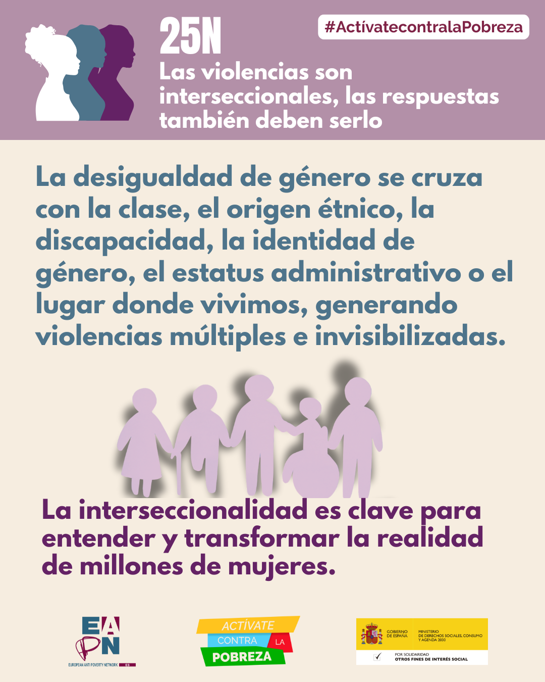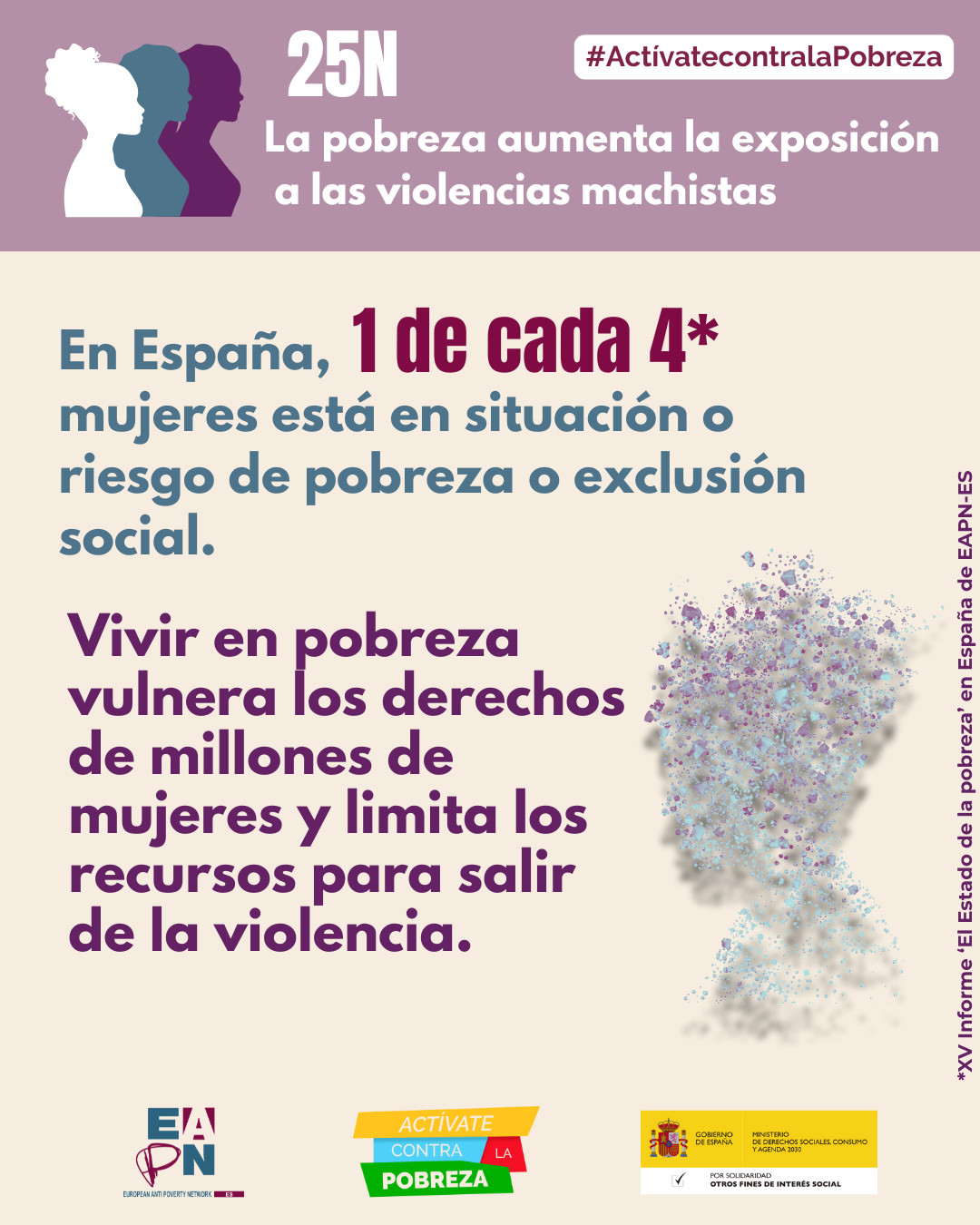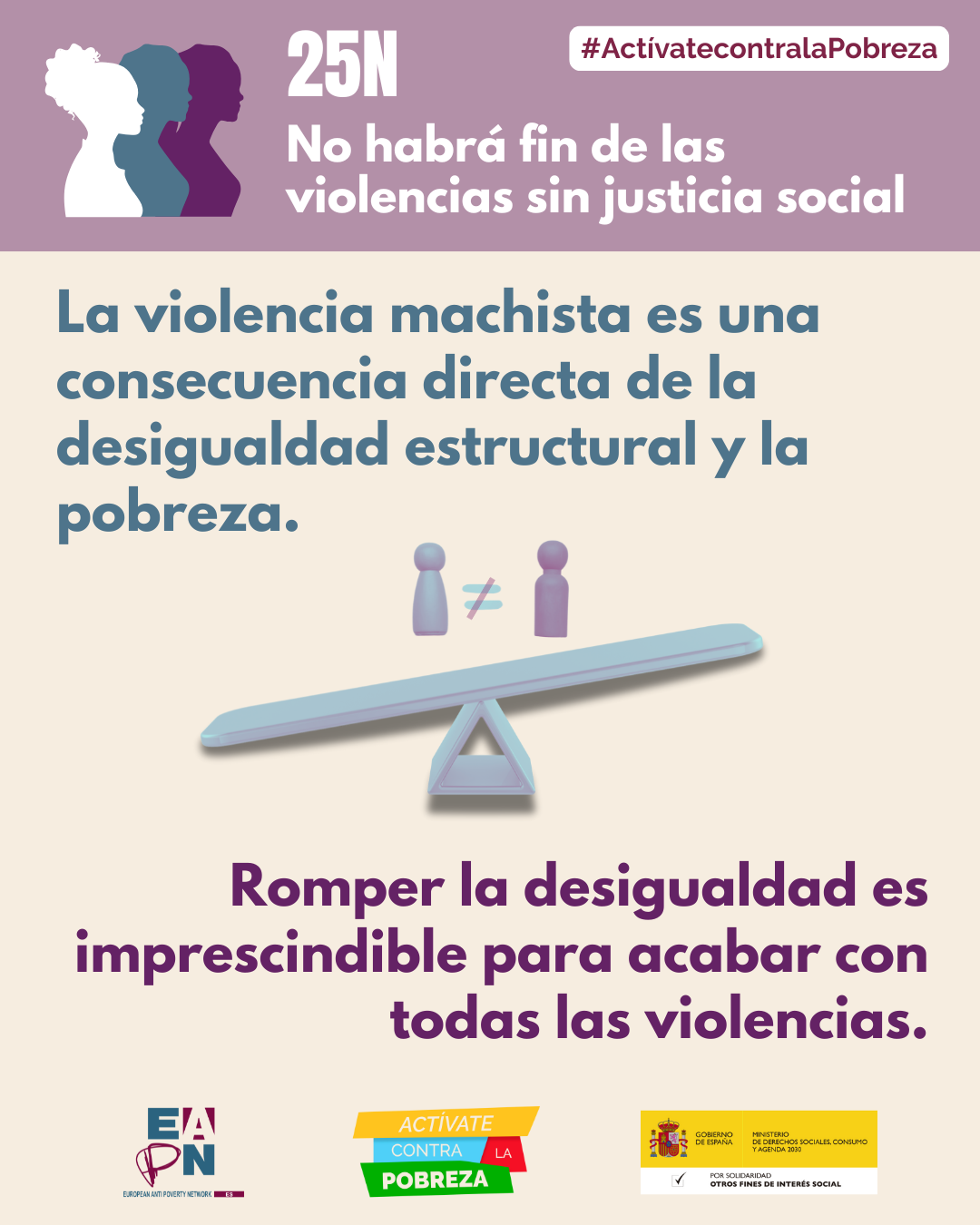 El 25 de noviembre se conmemora el Día Internacional de la Eliminación de las Violencias contra las Mujeres, la Red Europea de Lucha contra la Pobreza y la Exclusión Social en el Estado Español (EAPN-ES) reclama que este asunto sea considerado un asunto de Estado con total prioridad y subraya la relación directa que tiene con la pobreza y la exclusión social en el caso de las mujeres.